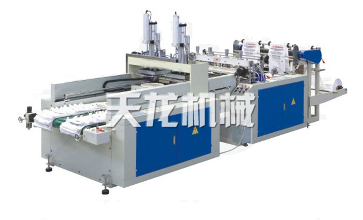 本機以HDPE、LDPE筒膜為原料可生產(chǎn)印刷、本色、背心袋,采用PLC控制、雙伺服(步進)馬達定長、液晶觸摸屏實時顯示,從送料、封底、 切斷、沖口、輸送一次性完成,自動化程度高,經(jīng)濟效益好。